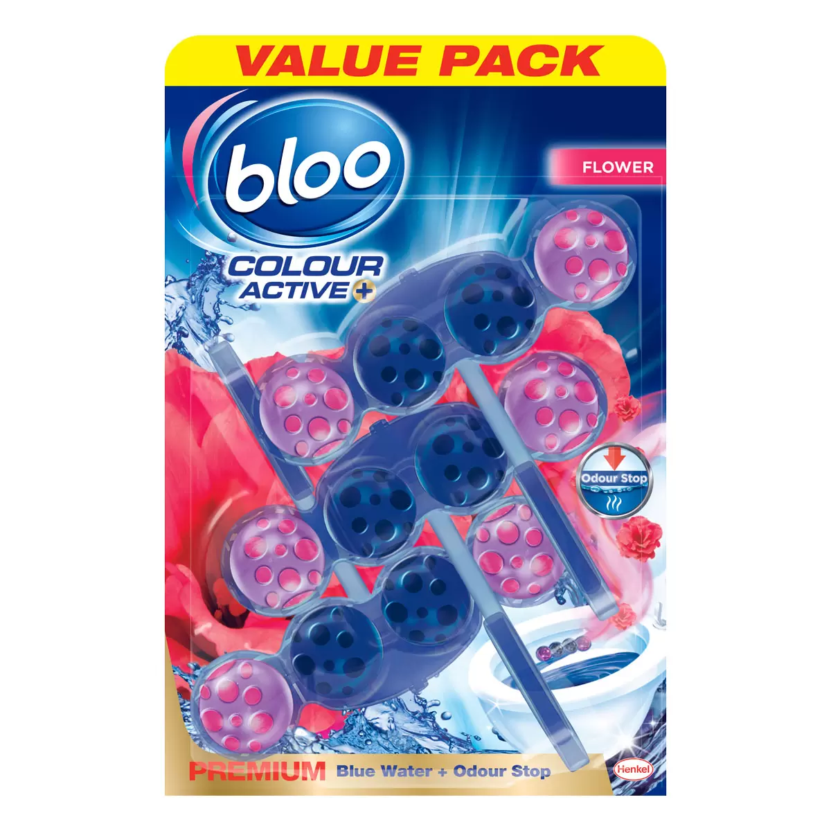 Bloo Colour Active Rim Block is an innovation which combines design and function in one. With its unique 4 in 1 function formula, it thoroughly cleans the bowl with every flush, turning your water blue and lasting up to 240 flushes.