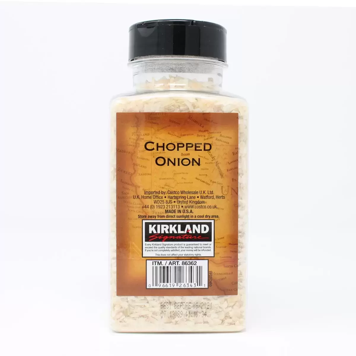 Kirkland Signature Chopped Onion is gently dried to preserve its fresh flavour. These California grown chopped onions are excellent in dips, soups, stews and marinades.