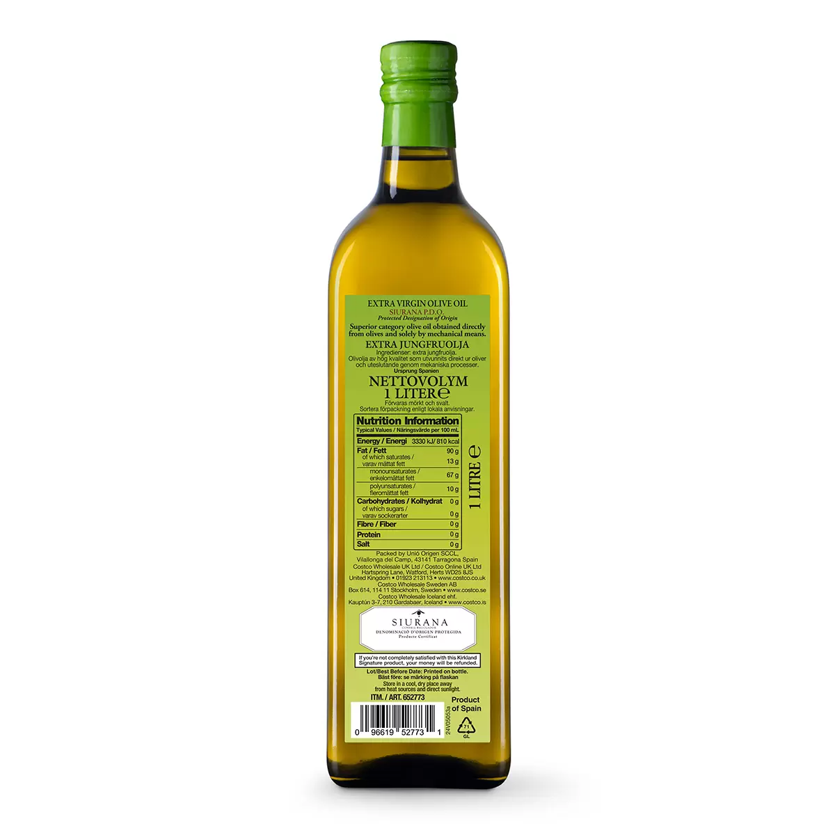 Kirkland Signature Extra Virgin Siurana Olive Oil is a superior category Olive Oil obtained directly from olives and solely by mechanical means. This golden Olive Oil is characerised by low acidity and a rich, fruity olive flavour, as it is cold extracted. It’s a great choice for salads and drizzling over vegetables.