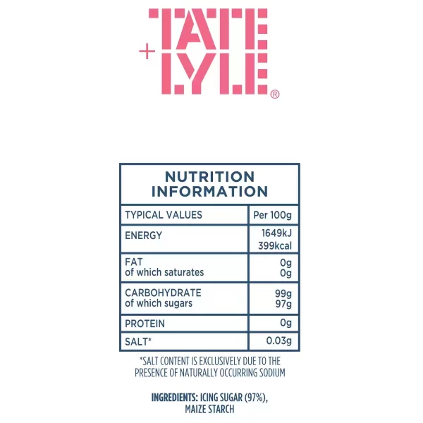 Tate & Lyle Fairtrade Icing Sugar is essential for making glacé or butter cream icing. Simply mix the Icing Sugar with water to produce a glossy “glacé” icing perfect for any size cake. For butter cream icing, simply cream the soft butter first. For special occasion cakes, reach for the Icing Sugar for piped and firmer results.