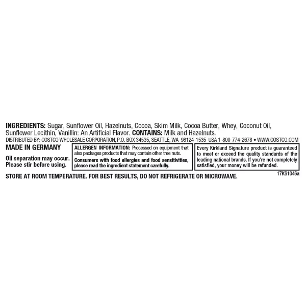 Kirkland Signature Hazelnut Spread has an alluring, silky smooth blend of chocolate, skimmed milk, hazelnuts and sugar. This creamy hazelnut spread will melt in your mouth, when eatern right out of the jar, but you can also use the spread to elevate some of your dishes to become even more craveable.