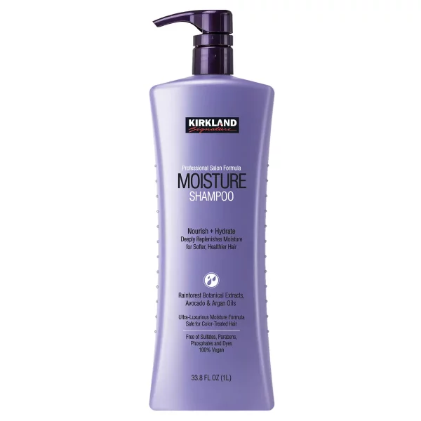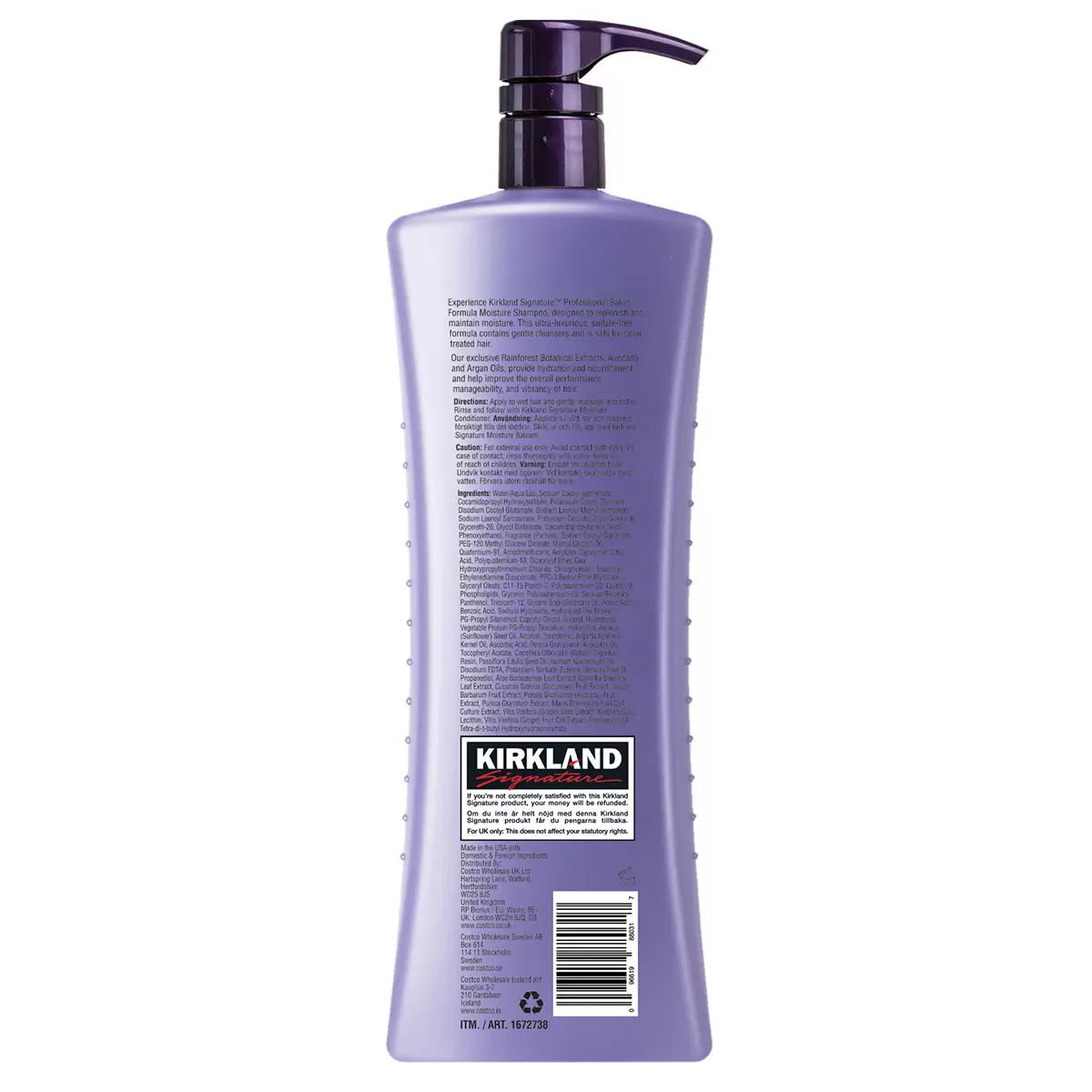 Kirkland Signature Moisture Shampoo is an ultra-luxurious, professional salon formula designed to gently cleanse hair while replenishing and maintaining moisture. This state of the art formula is sulfate-free and safe for color treated hair. Our exclusive blend of Rainforest Botanical Extracts, Avocado and Argan Oils, provide hydration, nourishment, and help improve the overall performance, manageability, and vibrancy of hair.