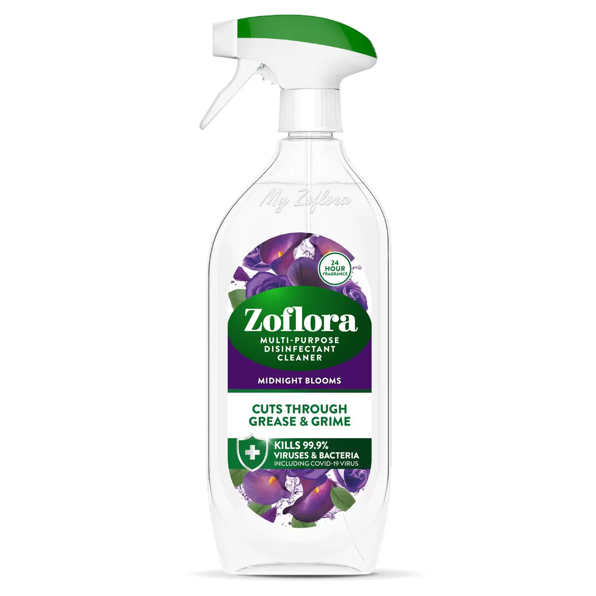 Zoflora Midnight Blooms Multi-Purpose Disinfectant Cleaner offers easy to use trigger spray. Simply spray onto surfaces, leave for 5 minutes then wipe away and buff with a microfiber cloth for a clean disinfected and streak free finish